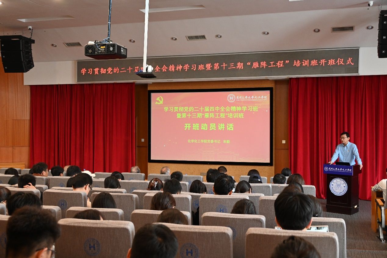 宋毅作开班动员讲话。他强调,在全国上下深入学习贯彻党的二十届四中全会精神之际,学院举办本期学习班,是要紧密结合化学化工学院的学科特色与发展使命,引导全体学员深刻领会全会关于“发展新质生产力”“建设现代化产业体系”的战略部署,准确把握“十五五”时期科技自立自强的紧迫任务。他期望学员们用党的创新理论武装头脑,充分发挥先锋模范作用,牢记共产党员的宗旨意识,做理论学习的“深耕者”、本领过硬的“带头人”,凝聚力量的“连心桥”,共同为推动学院“双一流”建设和事业发展贡献力量。