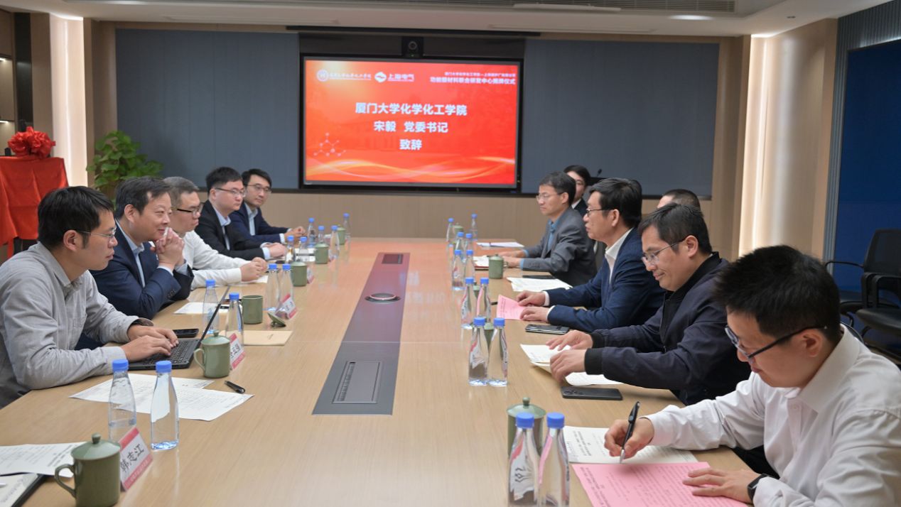 2025年12月12日上午,“厦门大学化学化工学院—上海锅炉厂有限公司功能膜材料联合研发中心”揭牌仪式暨座谈交流活动在厦门大学思明校区卢嘉锡楼215会议室顺利举行。上海电气集团科技创新部副部长汪浩,上海电气电站集团科技与数字化部部长蒋浦宁,上海电气电站集团科技管理处处长全玉强,上海氢器时代科技有限公司总工程师吴亮,上海锅炉厂有限公司技术部副部长韩志江,上海氢器时代科技有限公司综合管理部部长熊承龙,厦门大学化学化工学院党委书记宋毅,化学系主任叶龙武教授、化工系主任王远鹏教授、化工系黄小青教授,学院教师与研究生代表出席仪式。本次会议仪式由该联合研发中心的负责人、国家高层次青年人才、厦门大学化学化工学院陈南君主持。