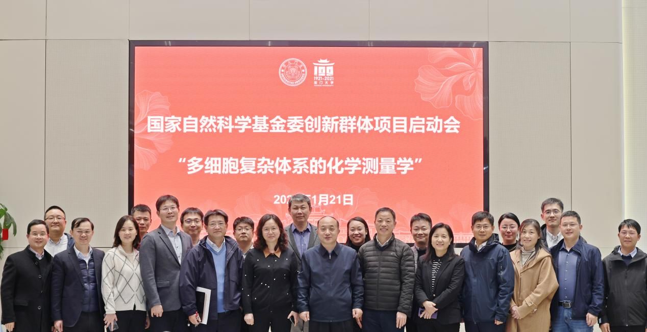 2026年1月21日,国家自然科学基金创新研究群体项目(A类)“多细胞复杂体系的化学测量学”启动会在厦门大学思明校区举行。国家自然科学基金委员会化学科学部常务副主任杨俊林、化学科学部四处处长王勇、综合与战略规划处处长张艳、综合与战略规划处副处长崔琳、厦门大学党委常委副校长尤延铖教授、中马高等研究院院长江云宝教授、化学化工学院院长任斌教授、科技处副处长李荔敏等出席会议。会议项目咨询专家组由方晓红研究员、何伟玲教授、刘定斌教授、谢海燕教授、张鑫教授、赵峰研究员组成。会议由厦门大学化学化工学院院长任斌教授主持,国家自然科学基金委员会化学科学部相关工作人员、项目组成员和厦门大学青年学者与会。