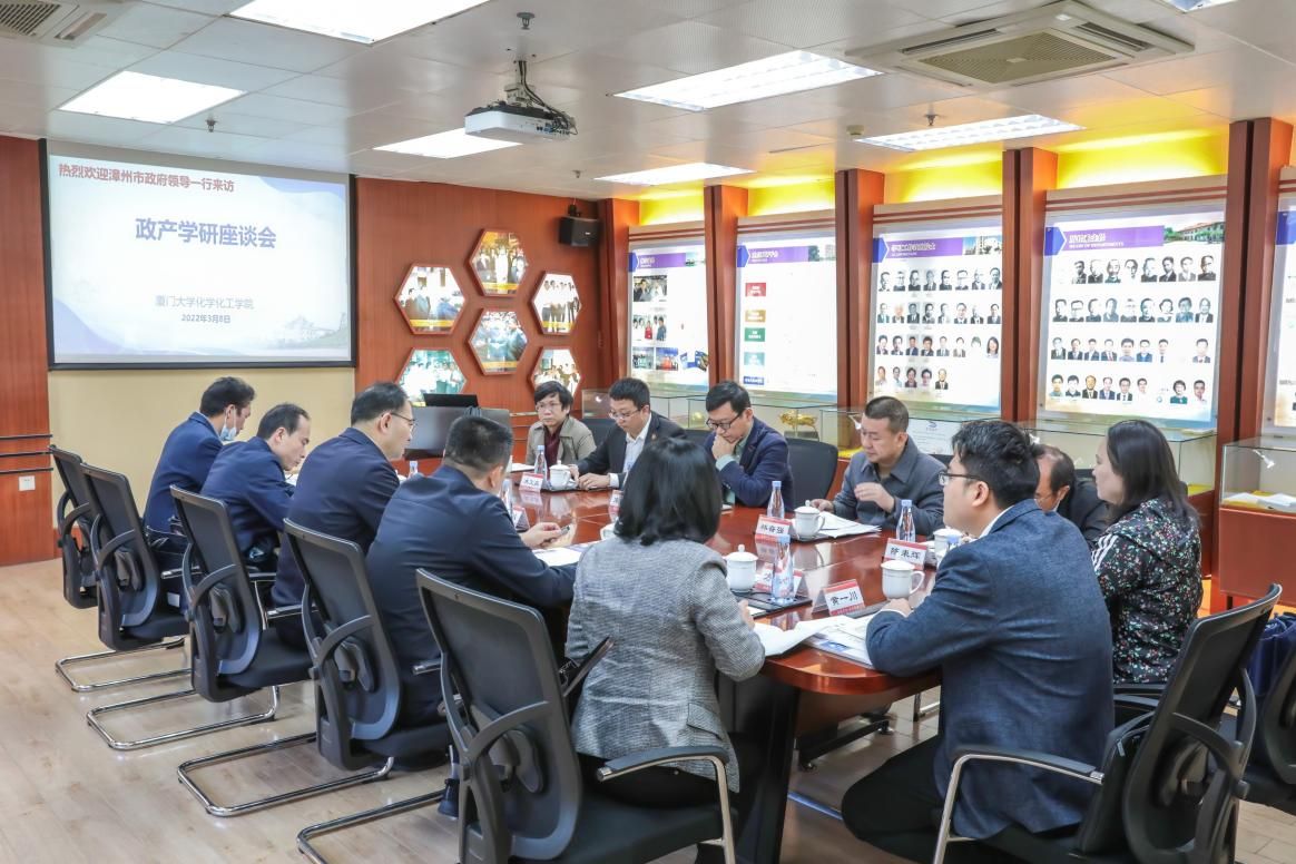 3月8日,漳州市人民政府副市长郑立敏率漳州市政府办、台商投资区管委会、市教育局、古雷开发区管委会、古雷开发区经发局等部门负责人一行来访我院调研交流。厦门大学国内合作办主任林奋强,我院党委书记宋毅、副院长洪文晶教授,化工系卢英华教授、陈秉辉教授、黄加乐教授,嘉庚创新实验室重大项目部部长陈伟平以及学院相关人员出席座谈会。