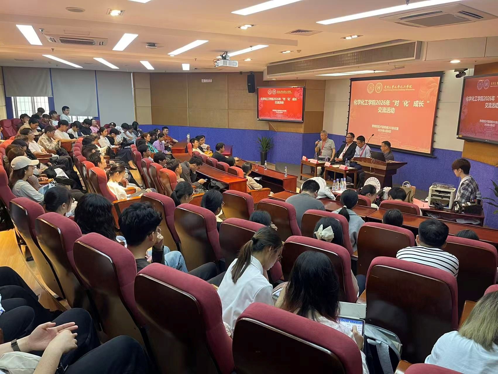 值厦门大学建校105周年之际,4月6日下午,化学化工学院于卢嘉锡楼202报告厅成功举办“对‘化’成长”优秀校友访谈会暨励学计划讲座。学院党委副书记聂鑫、团委书记高世杰,以及100余名本硕博学生参与活动,本次活动由2023级本科生杨天睿主持。