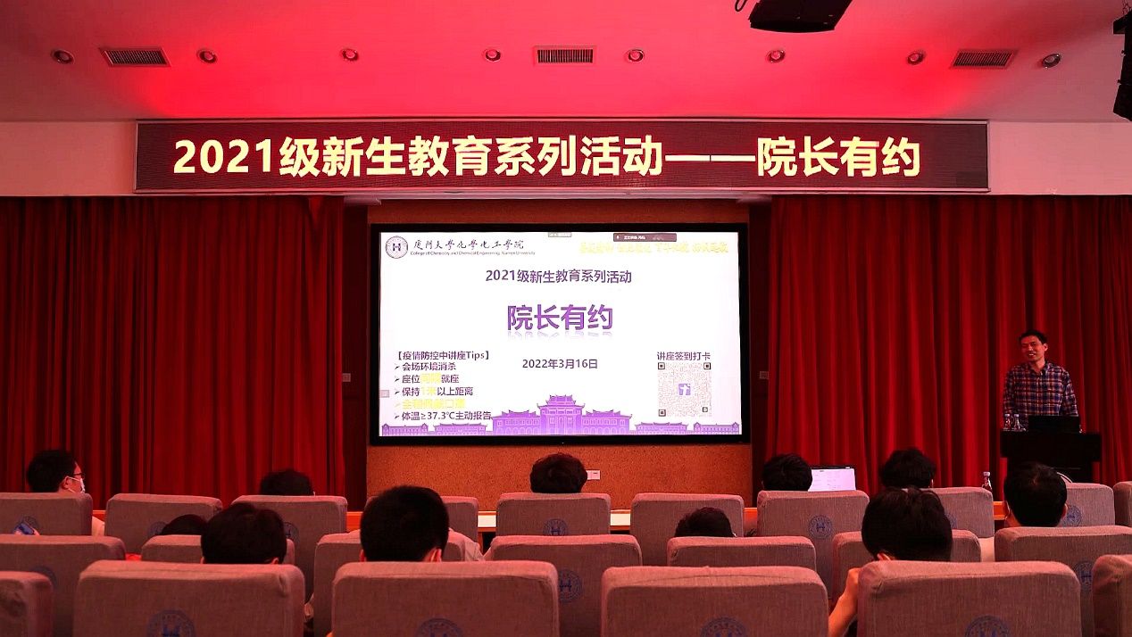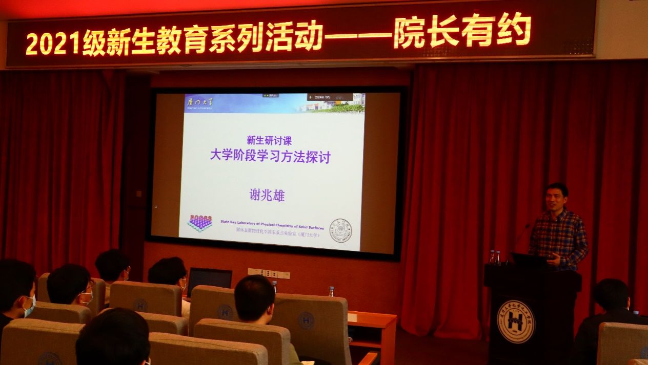 经过半年学习,化学之门正在缓缓地向我们打开,我们感受到自由开放的学习氛围,体验了多姿多彩的课余生活,同时对大学的科研、学习也产生了许多好奇和困惑。在辅导员冯石老师的策划下,我们邀请了谢兆雄院长来为我们答疑解惑,他是我们的大学长,也是我们学院百年巨舰的领航人。