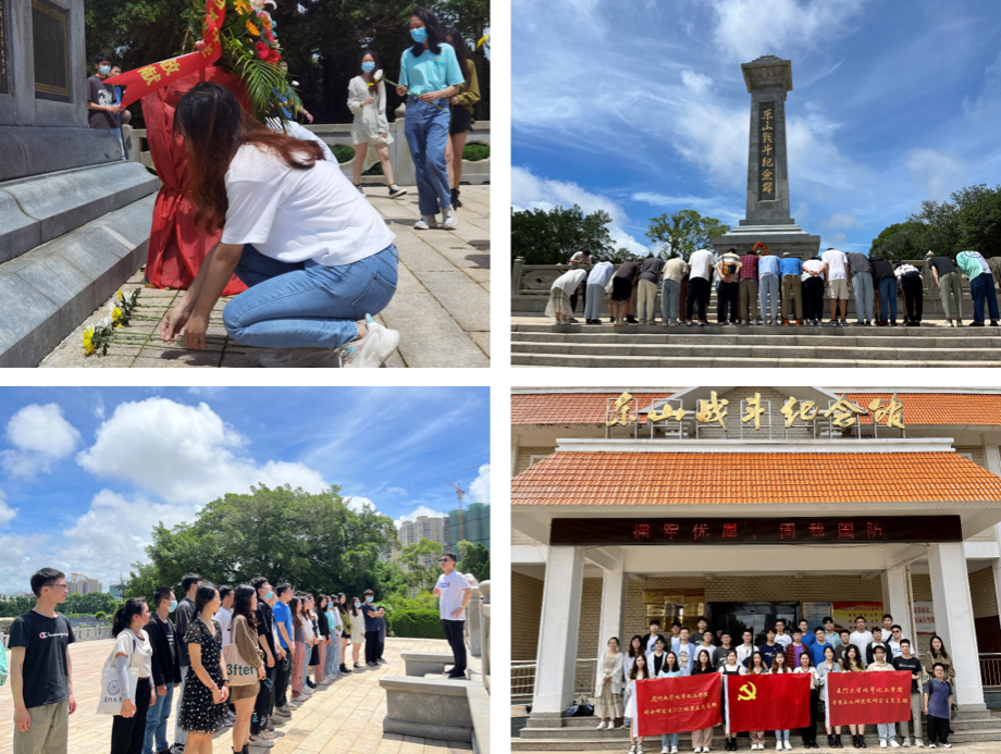 在刻有“革命烈士永垂不朽”的东山战斗烈士纪念碑前,同志们献花敬礼,沉痛默哀,表达了对先烈的敬仰。在纪念碑下,尚策老师为学生党员们上了一堂“学习党史,缅怀先烈”的主题微党课,详细讲述了69年前那场艰难的东山保卫战,解放军战士们以少敌多,英勇无畏,不怕牺牲,坚决捍卫国土;干部群众全力支援前线,配合作战,不计个人得失,体现了军民一心的强大力量。