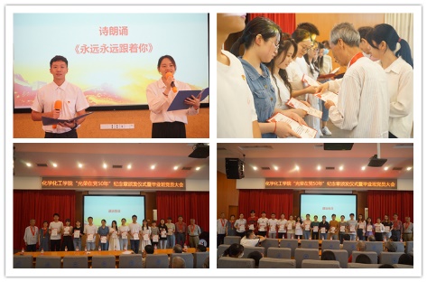 在喜迎中国共产党成立101周年之际,为进一步增进学院老党员的荣誉感、归属感和使命感,引导毕业班党员牢记初心使命、传承红色基因、永葆奋斗本色,6月14日,化学化工学院在化学报告厅隆重举行“光荣在党50年”纪念章颁发仪式暨毕业班党员大会。学院“光荣在党50年”纪念章获得者,校基层党建工作联络员白锡能,学院党委书记、副书记,党委委员,关工委负责人,离退休党员,全体毕业班党员出席大会。会议由学院党委副书记聂鑫主持。