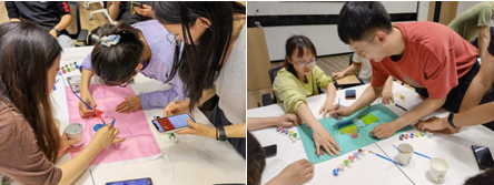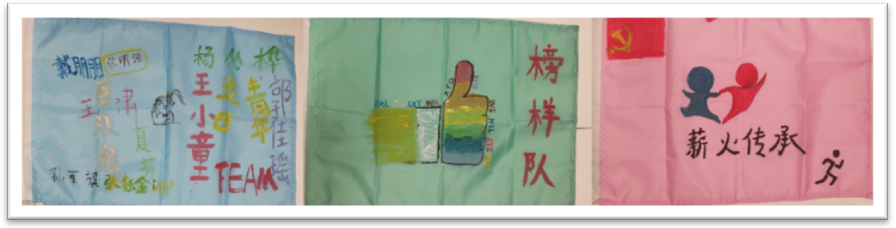 支部党员经双向选择分为三组,各组发散思维,共同创作,绘制出代表“热血青年”“争做榜样”和“薪火相传”的三支队旗,展现出当代青年热血、积极向上、团结的精神风貌。