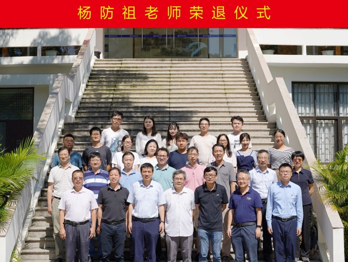 为弘扬学院尊师重教的优良传统,切实将离退休教职工关心关怀机制落到实处,增强退休教师的荣誉感、幸福感、归属感,2022年6月23日上午,学院为杨防祖教授精心组织了简短而温馨的荣退仪式。学院党委书记宋毅、院长谢兆雄、副院长任斌、化学系副主任陈嘉嘉、电化学科学与工程研究所党支部书记侯旭、所长詹东平以及研究所部分同事与学生代表等共计三十余人出席仪式,共同为杨防祖教授光荣退休献上祝福。仪式由詹东平教授主持。