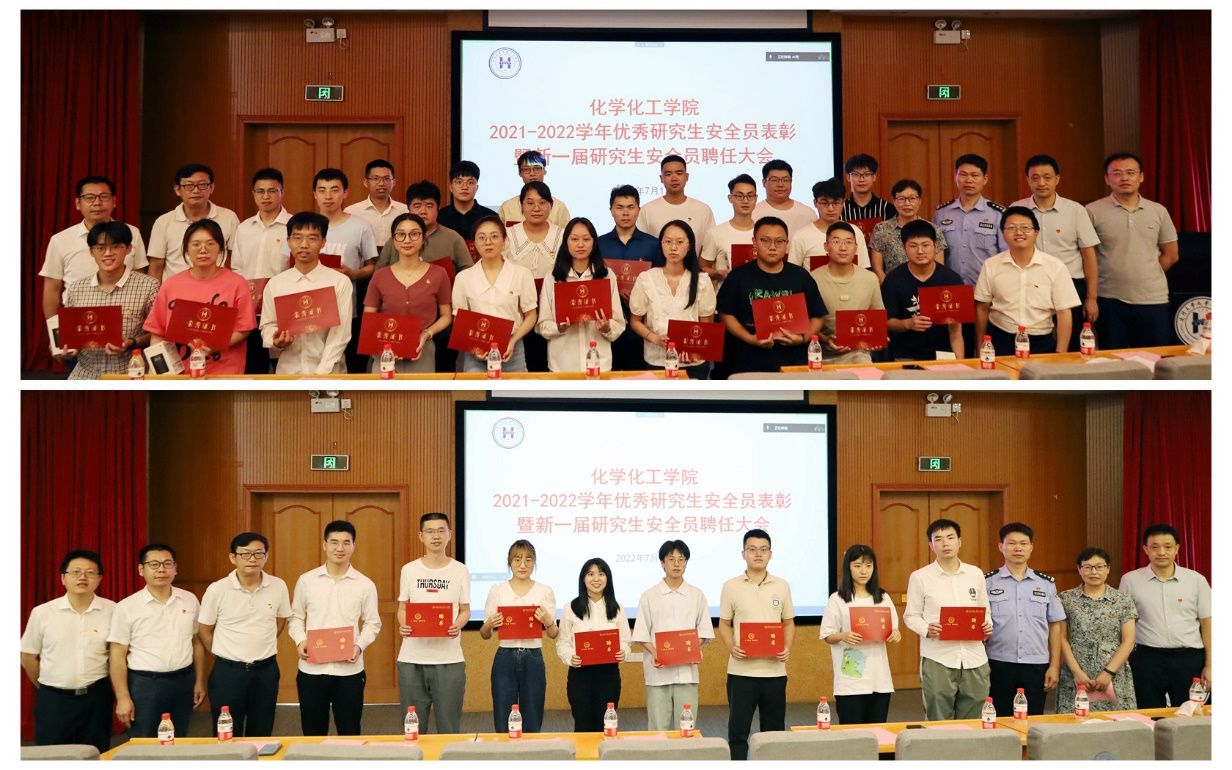 刘俊杰宣布了“2021-2022学年优秀研究生安全员”表彰名单,共计23名安全员获得荣誉称号。与会领导、嘉宾为上述同学颁奖,也为8名新一届安全员代表颁发聘书并合影留念。
