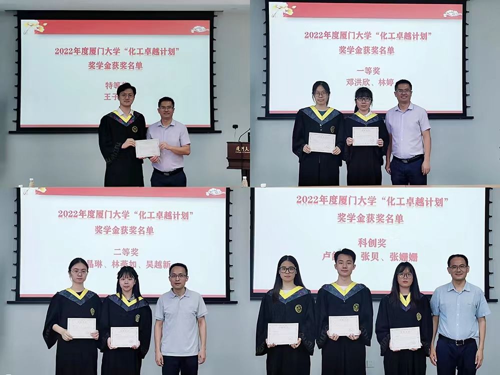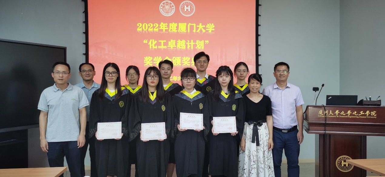 颁奖典礼上,黄加乐教授宣读“化工卓越计划”奖学金评选依据以及奖学金获奖名单。经学生申报、材料初审、答辩考核、工作组评定等程序,2018级王子钺、邓洪欣、林婷、黄晶琳、林燕如、吴越新、卢舒琪、张贝和张姗姗同学获得2022年度“化工卓越计划”奖学金。