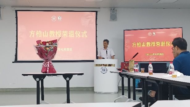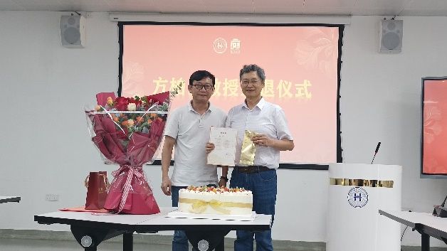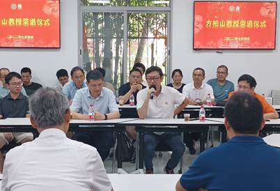 宋毅和谢兆雄在致辞中感谢方柏山教授为生物工程专业带来新的交叉方向,为一流学科建设和人才培养做出重要贡献。方老师不仅在学科上培养学生,热爱生活的精神也深刻感染着学生,祝福方老师退休生活更加精彩、身体健康,希望方老师宝刀未老、志在千里、发挥更大的光芒照亮其他人。洪文晶在北京录制视频送上祝福,感谢方老师多年的信任和支持,以及在学科发展和人才培养等方面做出的突出贡献。各地iGEM队员通过视频感谢方老师的悉心教导,祝福方老师光荣退休、退休快乐。
