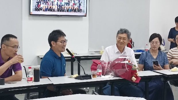 座谈会上,大家纷纷发表感言。刘俊杰表示,方老师对学生的培养涉及多个学院,深受学生们崇敬,有很强的人格魅力。钦佩方老师从莆田步行到厦大,重走父亲求学之路,这需要坚强的毅力和吃苦耐劳的精神。希望方老师培养好iGEM项目的接班人,退休后有所乐、有所为,继续发光发热。黄加乐回忆了与方老师相识近二十年,从学生时代到同事,很有缘分。他说,方老师作为长者,经常分享给晚辈自己的宝贵经验,鼓励年轻一辈进步成长,令人深受感动。曹名锋表示,方老师在生物工程和合成生物技术领域具有重要影响力,做出的贡献也有目共睹,祝福方老师退休快乐。陈秉辉感念和方老师的缘分历经三重合:华大、浙大和厦大,最后一起在厦大共同奋斗了十余年。王远鹏回顾了方老师对生物化工研究所发展的贡献以及对自己成长的帮助,衷心感谢老师的付出。卢英华回忆了作为系主任时引进方老师的历史,对方老师来到厦大带领学科发展表示感谢。张瑷珲代表方老师在读的10多位学生,追忆了方老师在科研与生活中对自己的关心和帮助,向方老师表达感谢与敬意。