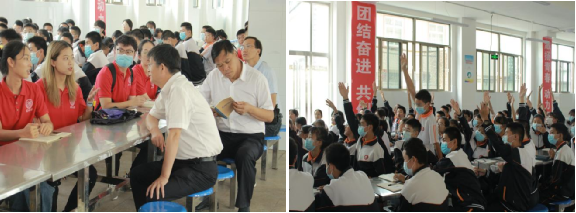 徐进功副书记一行首先来到巍山祥华中学北桥校区,在学院党委副书记刘俊杰、关工委常务副主任潘宝柱和带队教师王玲伟、李竟菲的陪同下,观摩了化学化工学院学生实践队以“学习方法分享”“我的大学生活”为主题的“学长说”课堂活动。他与队员们进行亲切交流,并对实践队的用心准备和精彩分享给予充分肯定。