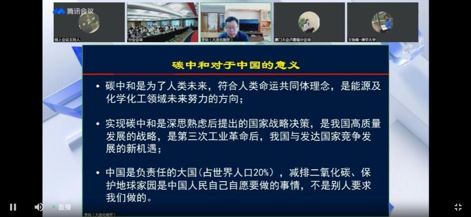 开幕式结束后,李灿以“绿色氢能和液态阳光:碳达峰和碳中和的战略路径”为题,在线上作特邀报告。