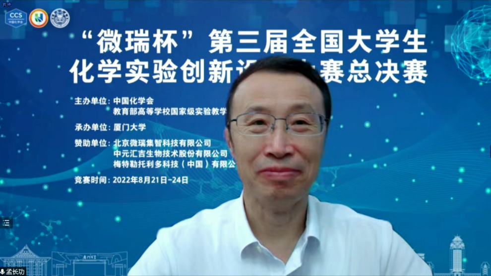 孟长功表示,虽然突发疫情为本次总决赛的筹备工作带来诸多困难,但承办单位厦门大学随机应变,灵活调整,周密策划,精心组织,保障了本次总决赛的顺利举行。大赛组委会多次召开会议,制定了严格的评分原则和评审机制,将最大程度保证竞赛的公平、公正和公开。希望参赛团队用好大赛平台,充分展示青年化学学子的精神风貌和科学素养,赛出风格、赛出水平、赛出佳绩。
