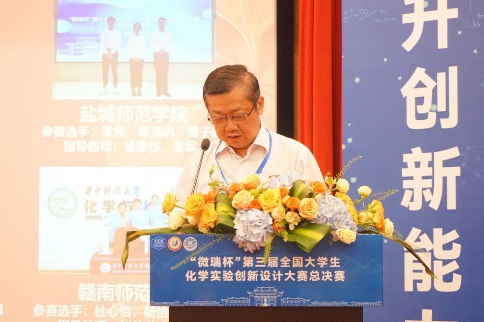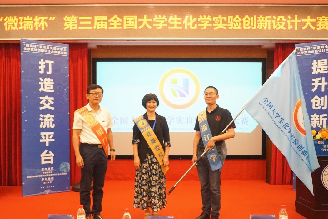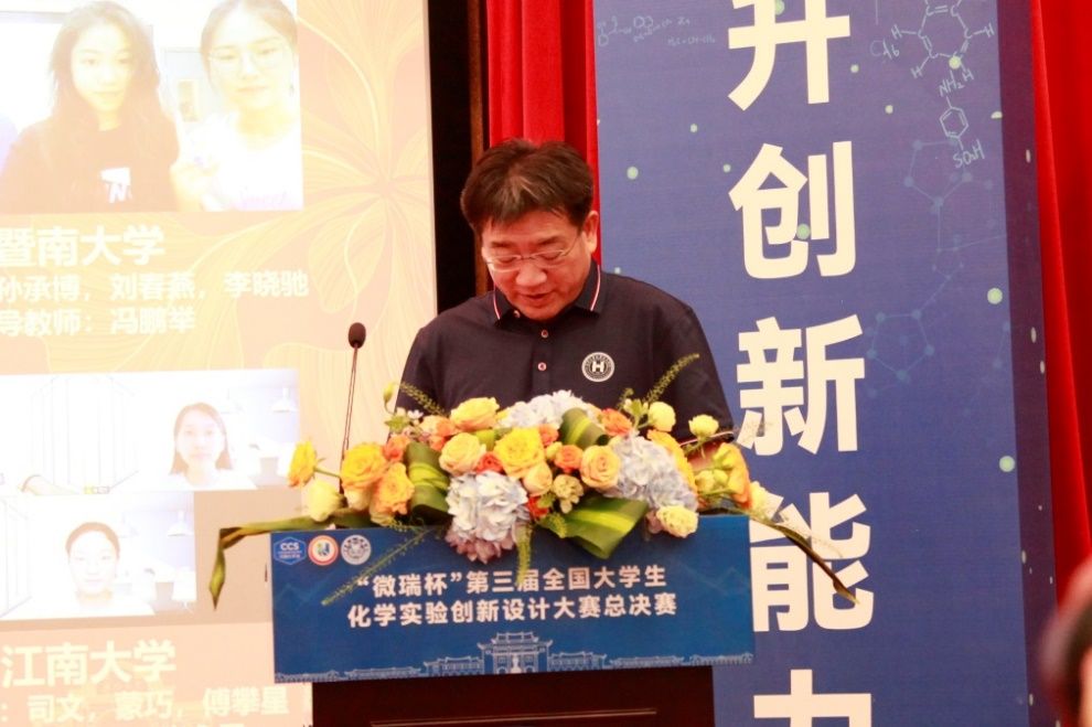 浙江大学化学系党委书记胡吉明代表下一届大赛承办单位致辞,并向全国高校发出明年参赛邀请。