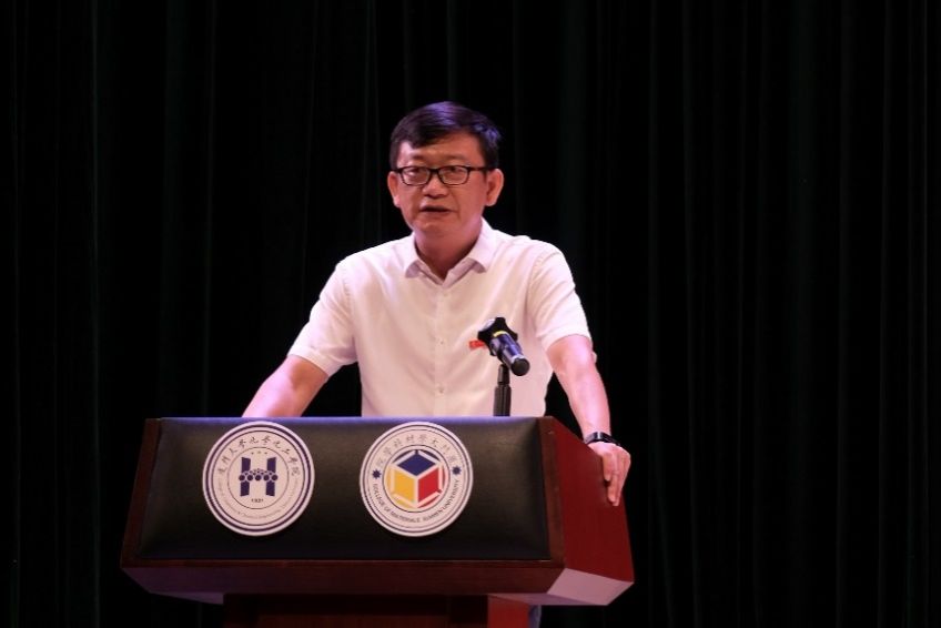 为了让全体新生更好地适应新环境、融入大家庭,谢兆雄和解荣军分别作两院情介绍。谢兆雄从百年历程、学科建设、师资队伍、人才培养、科学研究五个方面系统介绍了化学化工学院的综合办学实力和“双一流”建设近况。解荣军从“蓬勃发展”“聚焦需求”“立德树人”三个关键词出发,详细讲解了材料学院的办学特色和优势。两位院长祝愿同学们在南方之强的美丽校园里度过一段快乐、充实、美好的学习时光,通过努力奋斗不断锤炼自己、提升自己,早日成长为对国家对社会有用的栋梁之才。