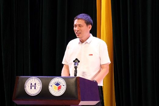 宋毅向2022级全体新生致欢迎辞。他表示,化学化工学院与材料学院同根同源,办学历史可追溯至一百年前设立的厦门大学化学学科。在本科生跨学院、跨学科大类招生背景下,两院首次联合举行开学典礼具有十分特别的意义。他向新同学们提出三点期望:一是胸怀远大理想,奋力肩负起时代赋予的重任;二是养成严谨细致的良好习惯,在细节中捕捉成功的曙光;三是培养团队意识和团队精神,学会与他人相处,懂得尊重包容;四是锻炼健康的体魄和心智,努力奋斗,不负青春。