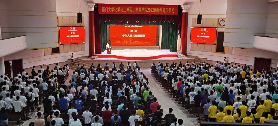 九月的鹭岛,火红的凤凰花灿烂盛开,迎接八方学子。9月8日上午,厦门大学化学化工学院、材料学院2022级新生开学典礼在建南大会堂隆重举行。化学化工学院党委书记宋毅,院长谢兆雄,党委副书记聂鑫、刘俊杰,副院长吕鑫、任斌、陈晓兰,关工委常务副主任潘宝柱,材料学院党委书记刘立荣,院长解荣军,党委副书记马兆海、黄兆君,副院长石巍、白华等两院党政领导、系所负责人、教职工代表、全体2022级1191名新生以及新生家长通过线上线下的方式共同参加典礼。典礼由刘俊杰主持。