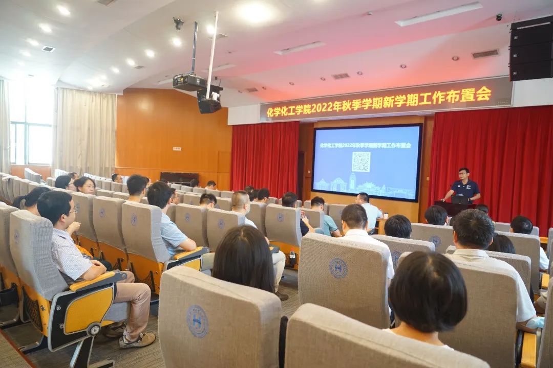 会上,院长谢兆雄以“一流征程同奋斗 时代潮头显担当”为题作工作报告。他简要回顾了2022年上半年学院在党的建设、人才培养、师资队伍、科学研究、学科建设、国际交流、社会服务等方面取得的成绩,代表学院党政班子向全院师生的辛勤付出和热心奉献表示感谢。之后,他着重讲解了“2023年“双一流”经费规划”“大型仪器平台建设”“固体表面物理化学国家重点实验室、高端电子化学国家工程研究中心重组”等新学期工作重点,并对党建、教学、科研、外事、后勤等下一阶段各项工作作了综合部署。