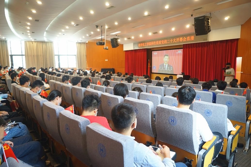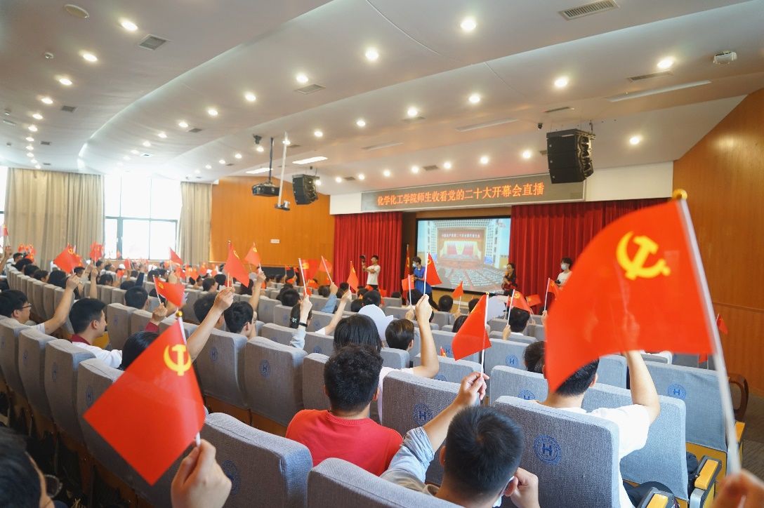 2022年10月16日上午,举国关注、举世瞩目的中国共产党第二十次全国代表大会在北京人民大会堂开幕。为深入学习贯彻党的二十大精神,化学化工学院在思明校区化学报告厅设置集中观看主会场,并在翔安校区与漳州校区设置分会场,组织三个校区师生员工集体收听收看大会盛况。