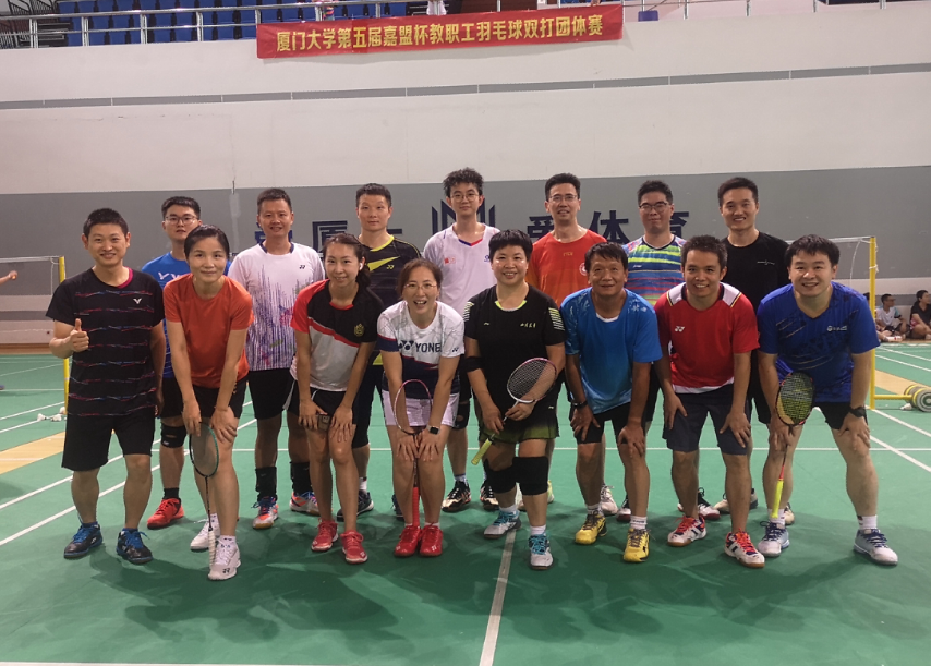 10月22-23日,由校工会主办、校教职工羽毛球协会承办的厦门大学第五届“嘉盟杯”教职工羽毛球双打团体赛在翔安校区爱秋体育馆和思明校区风雨球馆举行,来自全校各单位的32支队伍报名参赛,最终我院教工羽毛球队一队获得冠军,二队获得季军,三队进入十六强,在追平学院历史最佳战绩的同时取得新的突破。