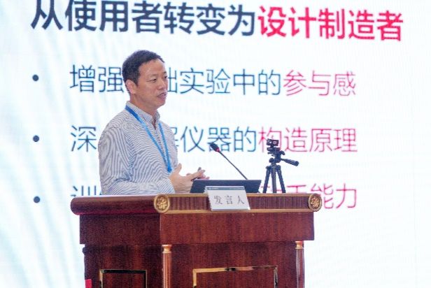 在大会报告上,郑院士讲述了厦门大学化学化工学院自制教学仪器的历程,分享了对于高校自主研制教学仪器并开设相关实验课程的深刻见解。他表示,当前,市面上教学仪器基本都是“黑箱子”模式,而且价格昂贵,难以满足基础化学实验教学的需求,因此开发成本低、运行稳定、仪器内部结构可视化、可自主拆装调试的教学用仪器势在必行。他还结合多年的教学一线工作经历,指出国内大学生普遍存在动手能力不足的问题,难以适应未来研究和工作的需求,因此急需在高校开设仪器自搭建实验课程,夯实学生的理论知识根基,让仪器分析实验内容从“打一针”转变为“大号玩具”的拆解组装,破除学生对科学仪器的神秘感,培养学生设计、改进仪器的兴趣和信心,努力提升学生的实践操作能力,为国家培养储备仪器制造方向的高素质专业人才。