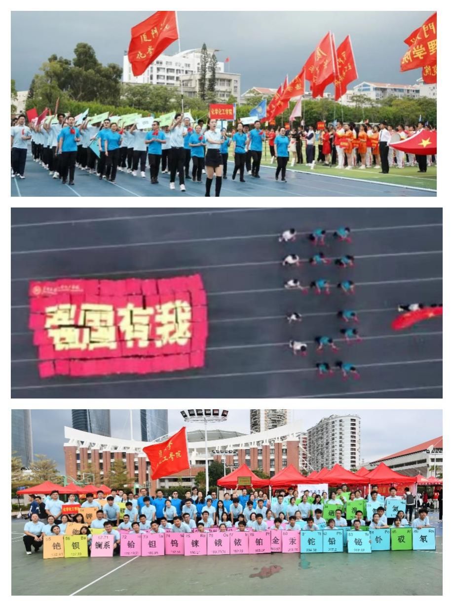 开幕式上,“化学化工,勇攀高峰;建设一流,再立新功”的铿锵口号又一年回荡在演武场的上空,化院的学生们意气风发、昂首阔步,充分展示了化院学子积极向上的精神面貌。72名同学一起组成的元素周期表,最终通过队形变换,组成“强国有我”四个大字,化院学子同心向党、奔赴梦想,发出“请党放心,强国有我”的铮铮誓言。