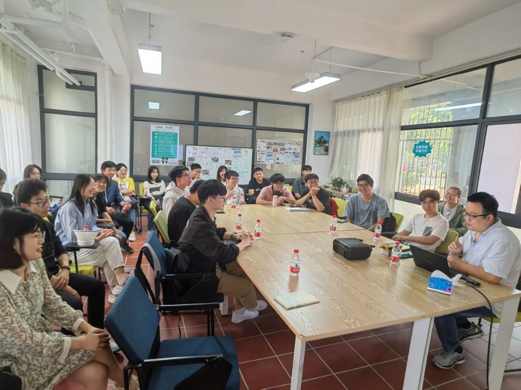 2022年11月17日上午,翔安校区“一站式”学生社区邀请到化学化工学院教授、能源学院副院长李剑锋老师分享自己的研究故事:拉曼光谱,把“冷”板凳坐“热”。出席本次活动的还有我院党委副书记聂鑫和研究生辅导员王慧。本次活动以师生互动交流形式展开,约30名来自我院及能源学院的本科生、硕士生、博士生积极参与其中。