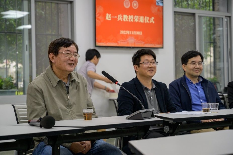 吴川六教授简要介绍了赵一兵老师的基本情况。赵老师自1990年入职厦门大学以来,已在化学化工学院工作三十余年,为学院发展做出了重要贡献。教学方面,赵老师勤勤恳恳、甘于奉献,长期主讲《仪器分析》《环境分析》《分析生物化学》等多门课程,获得学生一致好评;参加全国统编教材《分析化学》下册编写工作,该教材被众多高校选用,得到了任课教师和同学的高度评价。科研方面,赵老师追求卓越、不忘初心,发扬敢为人先的科学创新和探索精神,重视科研转化,在分析化学领域,特别是荧光光谱分析领域,取得了多项独创性的研究成果,为厦大分析化学学科的发展和影响力提升做出了突出贡献。学生培养方面,赵老师诲人不倦、以身作则,不断引导学生开阔视野,鼓励学生锐意创新,为国家和社会培养了大量人才,桃李满天下;在生活中,赵老师积极乐观、为人谦逊、乐于助人,是老师们心目中的好同事,是学生们心目中的好榜样。我们一直为身边有这样一位好老师、好同事而感到自豪。