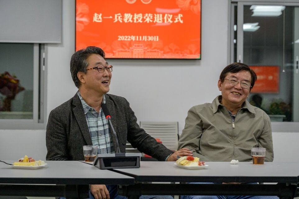 江云宝教授感谢学院为退休教师举办如此有情怀、有意义的退休仪式。他说,自己与赵老师共事32年,两人与王秋泉教授组成分析专业的“铁三角”,一同为分析化学专业的发展而奋斗。自己与赵老师有着相同的教学理念,一起搭班开展《仪器分析》课程教学工作。在教学上,赵老师对学生循循善诱,教授学生学习方法,为学生开展创新型研究打下坚实基础。在科研上,赵老师作为我院最早开展生物分析研究的老师,诸多奇思妙想令人印象深刻,并在教研室的发展、科研成果转化等方面做出了杰出的贡献、立下了汗马功劳。于无声处听惊雷,赵老师沉稳的个性和宽广的胸襟如同定海神针一般,让旁人感到温暖可靠、稳定心安。希望赵老师退而不休,继续关心学校、学院和研究所的发展,有空常回来聚聚。