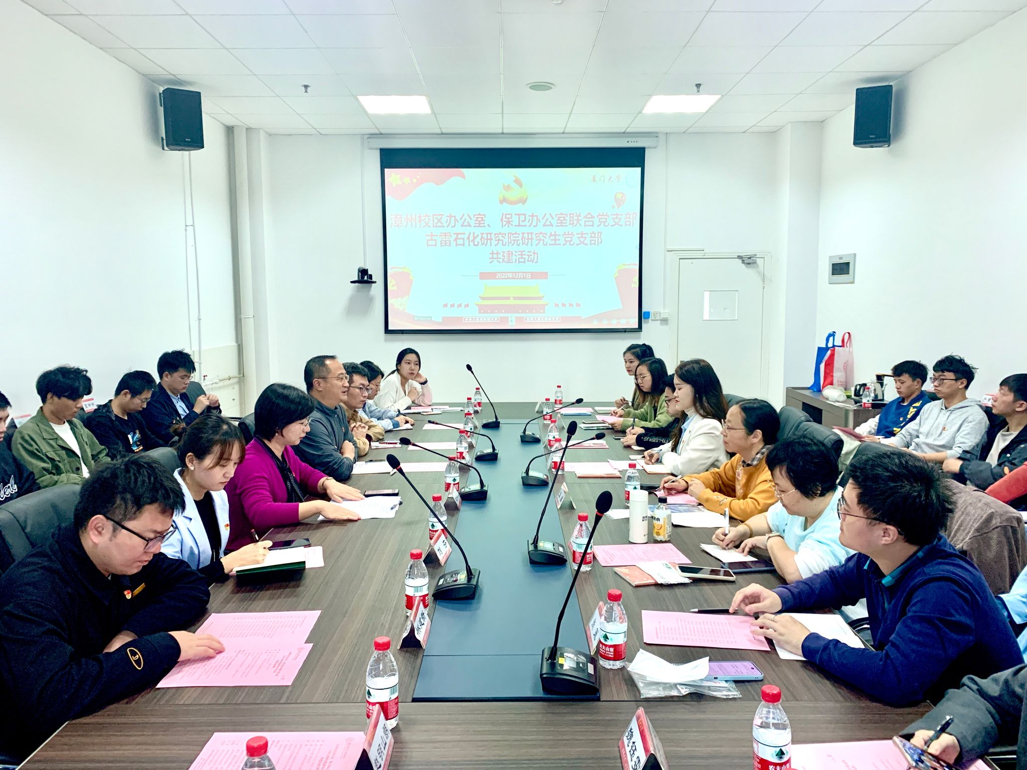 为深入贯彻党的二十大报告关于“全党要把青年工作作为战略性工作来抓,用党的科学理论武装青年,用党的初心使命感召青年,做青年朋友的知心人、青年工作的热心人、青年群众的引路人”的要求,扎实推进三全育人工作,2022年12月1日上午,漳州校区办公室、保卫办公室联合党支部与化学化工学院古雷石化研究院研究生党支部共建启动仪式在漳州校区生化主楼举行,参加本次会议的有漳州校区办保卫办联合党支部书记、漳州校区办公室主任王智兰,漳州校区保卫办主任江顺,化学化工学院党委副书记聂鑫,以及两个党支部党员、化学化工学院各年级研究生辅导员。启动仪式由王智兰主持。
