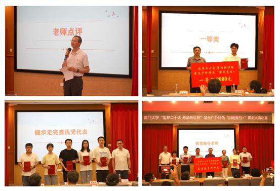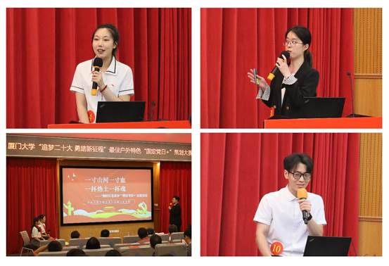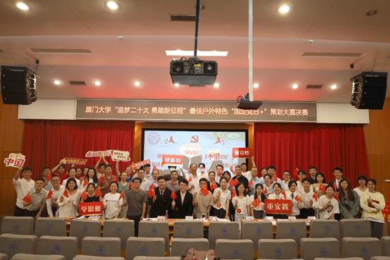 为深入开展学习贯彻习近平新时代中国特色社会主义思想主题教育,全面学习贯彻党的二十大精神,牢牢把握“学思想、强党性、重实践、建新功”的总要求,5月19日晚,厦门大学“追梦二十大 勇踏新征程”之最佳户外特色“固定党日+”策划大赛决赛于思明校区化学报告厅举行。校关工委常务副主任赖虹凯,校基层党建工作联络员、第五巡回指导组组长郑建华出席活动。全国党建工作样板支部书记曲延云、校学生工作部副部长刘俊英、共青团厦门大学委员会副书记晏振宇、《厦大党政工作研究》副主编杨旭、体育教学部党委副书记刘建敏等担任评委。