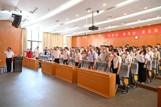 “我志愿加入中国共产党……”重温入党誓词环节中,在刘俊杰的带领下,大家起立,举起右拳,庄严宣誓,表达对党的坚定信念和为党的事业奋斗终身的决心。铮铮誓言,字字千钧,回声久久响彻化学报告厅。