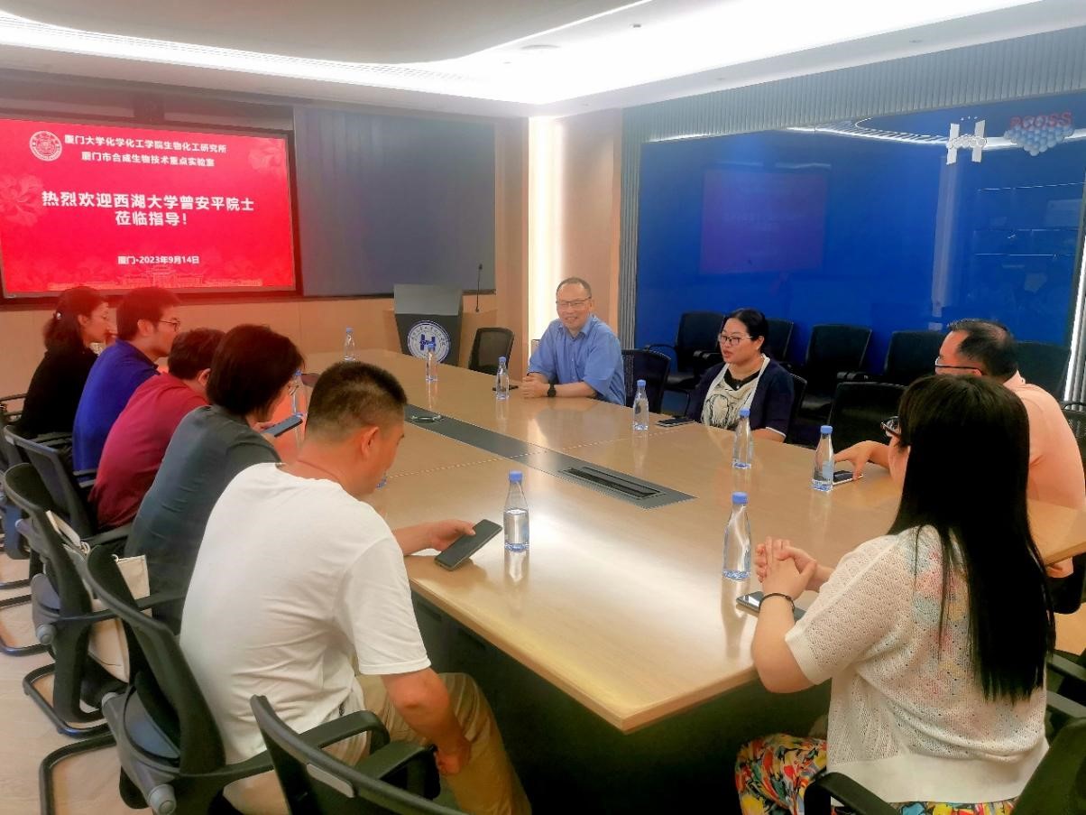 来访厦大期间,曾安平院士还与生物化工所的老师亲切座谈,探讨生工专业学科建设方向,列举了数个德国生物催化落地项目,传授了生物绿色制造工程化的经验。