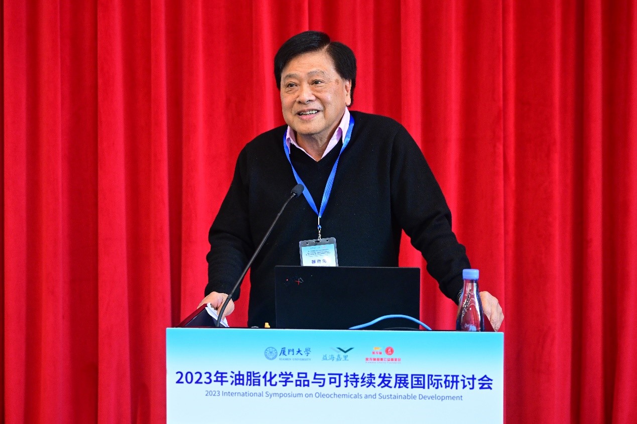 11月16日-18日,2023年油脂化学品与可持续发展国际研讨会暨厦门大学化学化工学院粮油化学科研创新中心、厦门大学公共卫生学院人类营养研究创新中心成立仪式在厦门大学思明校区举行。本次会议由厦门大学、益海嘉里集团、金龙鱼慈善公益基金会主办,厦门大学教育发展基金会、科学技术处、化学化工学院、公共卫生学院承办。厦门大学副校长史大林教授,丰益国际首席科学家、中国科学院外籍院士蔡南海教授出席会议并致辞。益海嘉里集团监事会主席、金龙鱼慈善公益基金会理事长张建新,益海嘉里集团首席科学家徐学兵教授、集团研发中心总监姜元荣博士、福建企业群总经理廖宇力、集团油脂科技研发总监杨天奎教授等益海嘉里集团、金龙鱼慈善公益基金会嘉宾,新加坡国家科学院院士、马来西亚科学院院士罗德平教授、新加坡国家科学院院士陈俊丰教授等来自南洋理工大学的专家学者,厦门大学科技处副处长冉广教授,教育发展基金会副秘书长徐滨,化学化工学院党委书记宋毅、院长谢兆雄教授,公共卫生学院副院长葛胜祥教授,以及来自厦门大学、华南理工大学、华东理工大学、江南大学、集美大学、嘉庚创新实验室等多所国内高校、科研院所的专家学者共同参加会议。