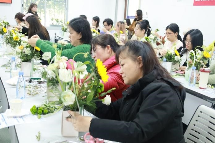 本次活动包括理疗讲座、花艺DIY、巧编中国结三个部分。