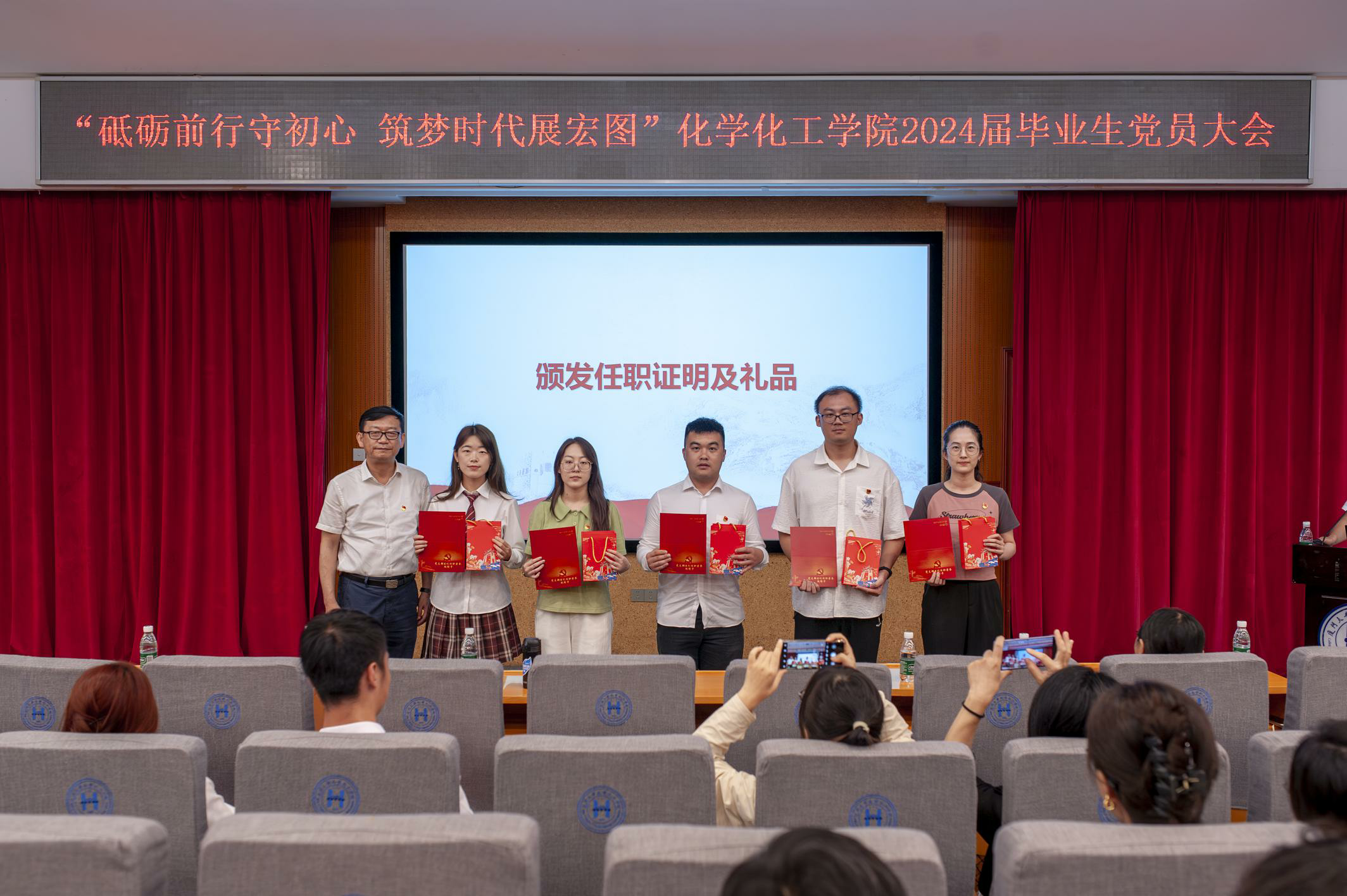 为感谢学生党支部书记和支委在思想政治、学习生活中发挥的骨干带头作用和先锋模范作用,大会首先举行毕业班党支部书记任职荣誉致谢仪式。
