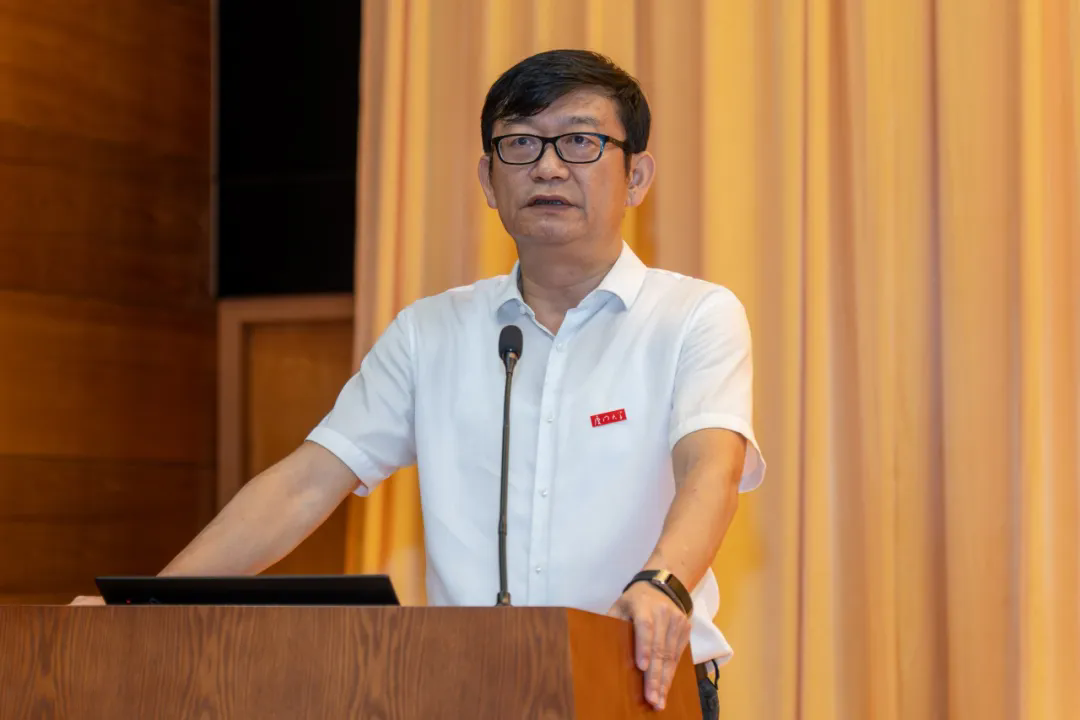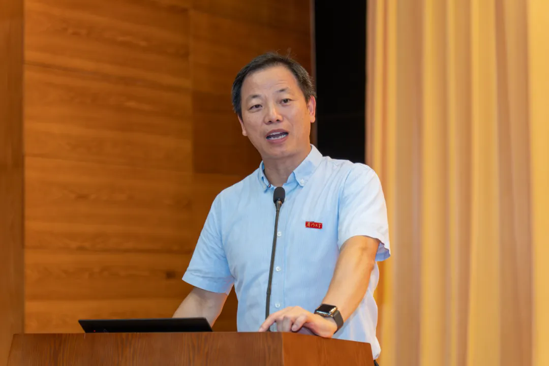 典礼结束后,厦门大学研究生院常务副院长谢兆雄教授为全体新生讲授“开学第一课”。他首先阐述了自身对大学阶段学习性质的理解。他表示,大学学习不是解题考试,而是积累知识、掌握方法,为日后工作做准备。之后,他结合自身独特的学习工作经历和大量生动的案例,就“大学阶段如何学习”给出了自己的答案——他教导同学们要厚植家国情怀,涵养使命感和责任感;养成独立思考的习惯,善于从学习内容中提炼方法;打牢专业基础,养成严谨细致的良好习惯,通过学科交叉创新拓展知识面;不断提升自己“想”与“验”的能力,善于在生活中发现科学问题、启迪科学思维;聚焦“四个面向”,做有价值的研究,让科研成果更好地服务国家战略需求和区域经济社会发展。