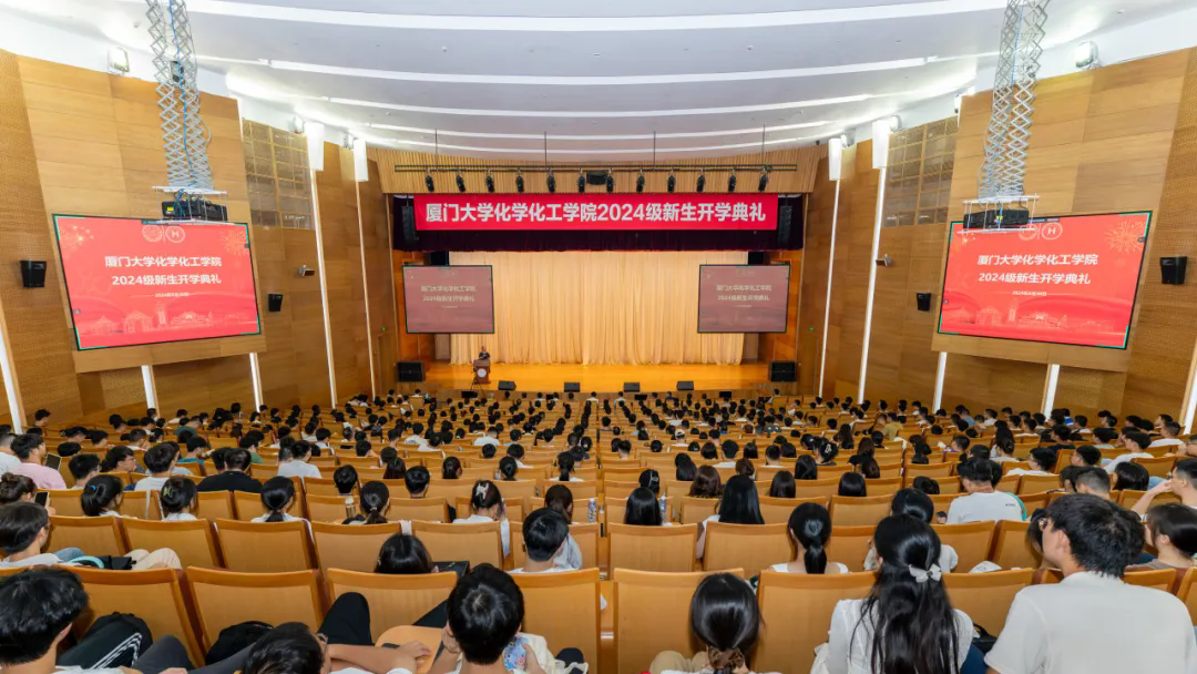 学海泛舟扬帆起,化雨春风育新苗。8月30日上午,化学化工学院2024级新生开学典礼在思明校区科艺中心三楼报告厅举行。翔安校区同步开通线上分会场。学院党委书记宋毅,院长任斌,副院长陈嘉嘉、陈晓兰,学院关工委常务副主任潘宝柱,各系所负责人, 2024级本科生、研究生班主任、辅导员等教师代表,以及千余名新生参加典礼。典礼由学院党委副书记聂鑫主持。