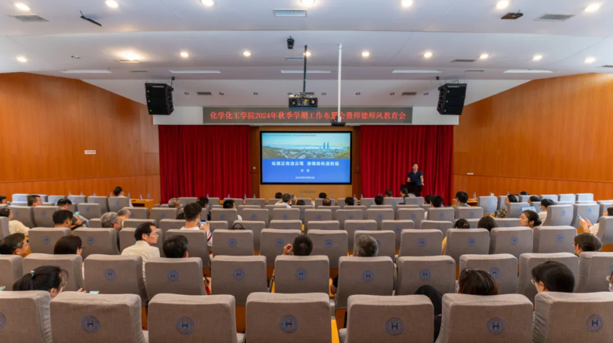 为深入学习贯彻党的二十届三中全会精神,系统谋划新形势下学院综合改革举措,凝心聚力推动新学期学院各项工作顺利开展,同时,进一步加强学院师德师风建设,打造高素质教师队伍,涵养风清气正的育人环境,9月5日,化学化工学院召开2024年秋季新学期工作会暨师德师风教育会。学院全体教职员工参加会议。会议以线上线下相结合的方式举行,主会场设在思明校区化学报告厅,翔安校区设置视频分会场。会议由学院党委副书记聂鑫主持。
