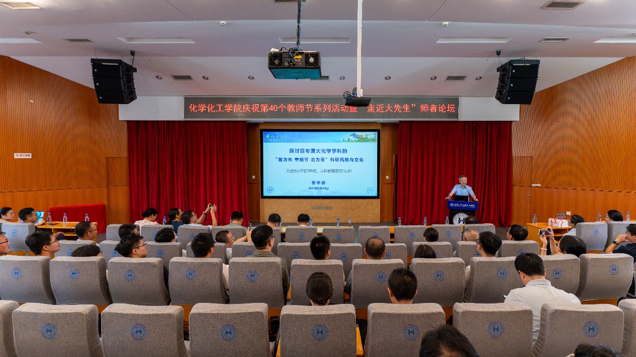 论坛上,田中群作题为《探讨百年厦大化学学科的“敢为先 重细节 合为贵”科研风格与文化》的专题报告。