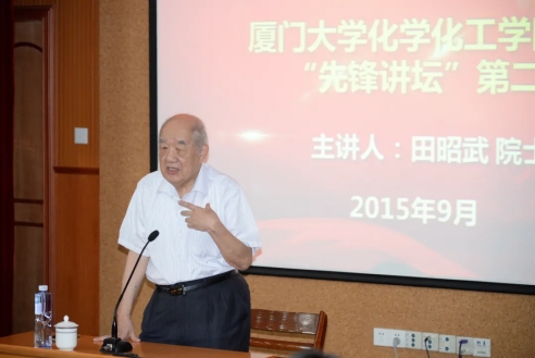 田昭武先生是学高为师、德高为范的教育家。他始终把教学作为本职,践行“教授坚守课堂一线教学”理念,长期为本科生和研究生授课,培养了7名博士后、39名博士、32名硕士,其中5名弟子已成长为中外院士。他潜心研究、笔耕不辍,编著的《电化学研究方法》成为广大电化学学子的重要教材,是中国电化学科学经典著作之一。他致力于实现中国电化学学科的“春满园”,自1977年起率先并多次举办全国性电化学培训班和研讨班,为我国培养了一大批电化学学科带头人和科研教学骨干;积极搭建电化学国际交流平台,1995年担任大会主席组织了第一次在我国举办的国际电化学学会年会,500多位国际学者参与盛会,对推动中国电化学学科的发展和奠定在国际上的地位和影响做出了杰出贡献。他捐资设立厦门大学“田昭武学科交叉奖”“清寒奖学金”等多个奖教奖学金,展现了甘为人梯、奖掖后学的师者风范。