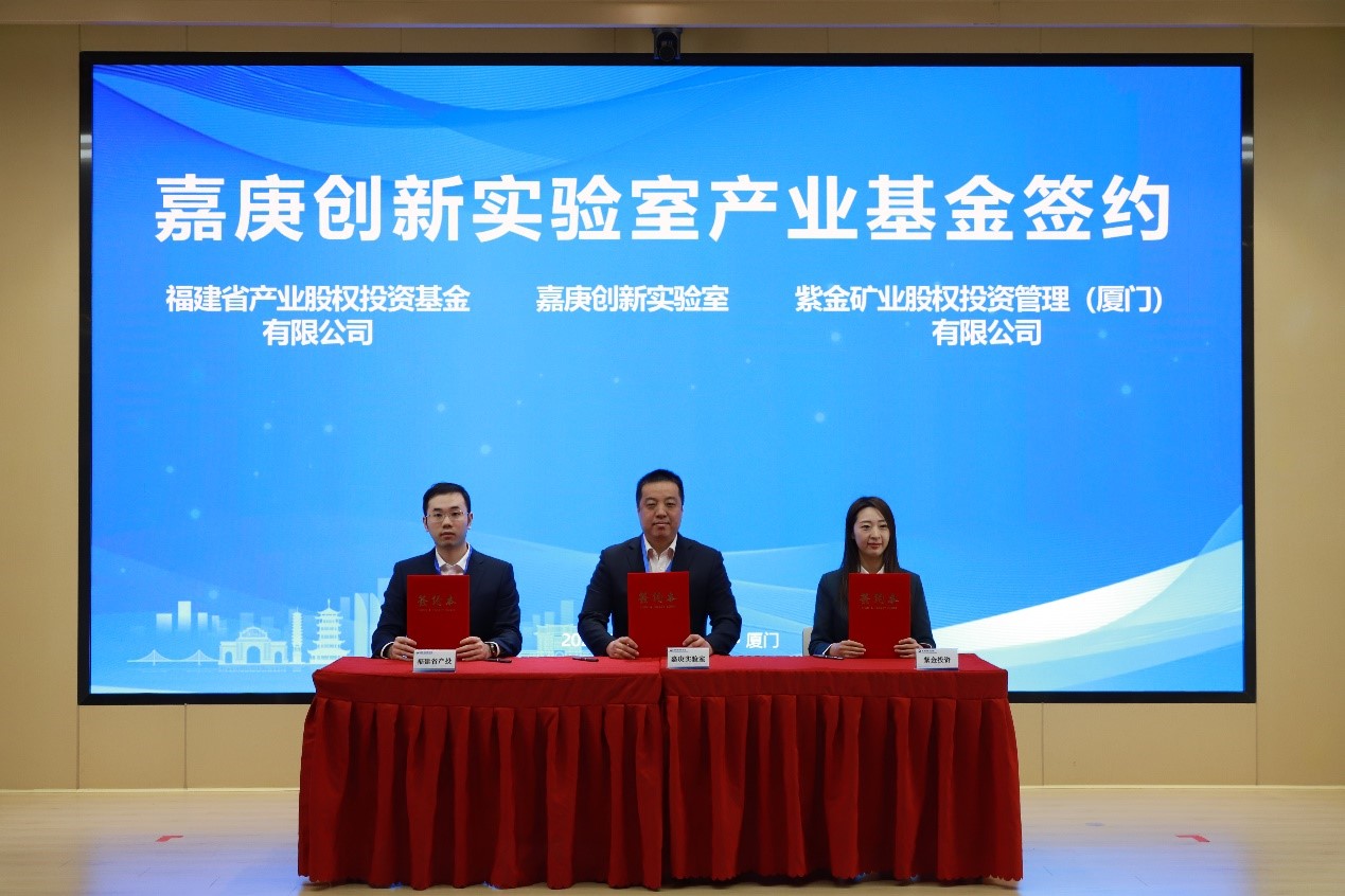 会上举行福建省产业股权投资基金有限公司、紫金矿业股权投资管理(厦门)有限公司、嘉庚实验室共建紫金闽投启航基金签约仪式。福建省产业股权投资基金有限公司副总经理林英杰,紫金矿业股权投资管理(厦门)有限公司副总经理王艳,嘉庚创新实验室科技产业公司执行董事、重大项目部部长陈伟平作为三方代表上台签约。