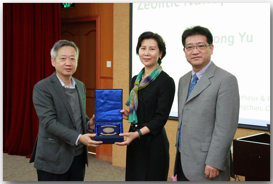 讲座过程中,于吉红院士详细介绍了如何通过系统合成建立数据库并从中发现和总结规律,以求建立理论和方法,实现工业上重要的固体催化剂分子筛的定向设计与合成。于吉红院士介绍,在结构设计方面,结合理论模拟和密度图可以构筑分子筛结构,通过筛选新的可行结构,从而合成出所要的目标分子筛结构。在定向合成方面,通过杂原子的取代和刚性大尺寸的有机胺模板剂,高通量组合化学可以实现超大孔道的构筑;通过手性模板和杂原子取代,可以实现手性孔道的构筑。在应用方面,原位限域合成负载Pd或Pd/Ni的分子筛,是催化氢化反应的高效催化剂;通过对分子筛薄膜的表界面结构控制,可以实现混合体系中油与水的分离。