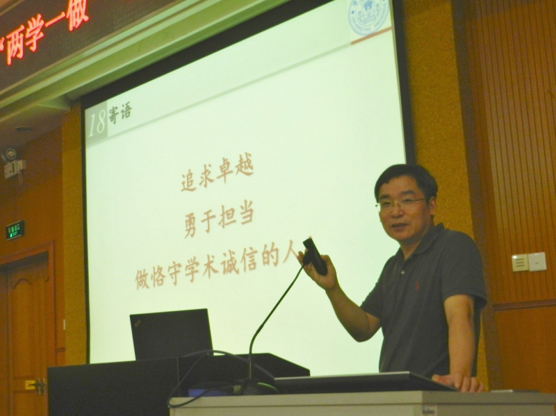 赵金保教授指出,真实性原则是学术科研最基本的原则,科研诚信直接影响科研环境,对科研创新水平和科技人才成长具有至关重要的作用。诚信,是一个人在社会中生存和发展的基础,是一种责任、道义与准则,更是一个人的声誉与资源。他介绍了大学里常见的学术诚信问题,并引用国内外具体的案例说明因为学术不正给自己和整个团队组织带来的严重后果。谈到如何做到学术诚信,他认为除了需要社会严格执行相关规定、标准和规范,更重要的是自律,自觉遵守学术规范,克服投机取巧、心浮气躁、急功近利的心态,要求大家追求卓越、勇于担当、做恪守学术诚信的人,不忘初心、努力前进。