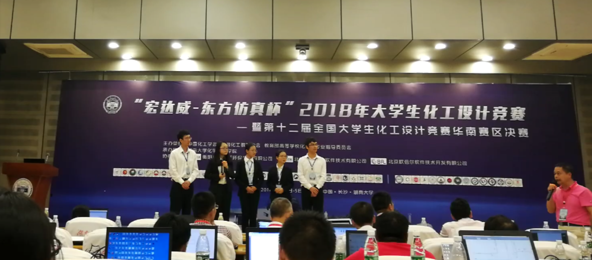 自3月报名开始,参赛选手从项目可行性论证、工艺流程、设备选型、自动控制、车间及工厂总体布置、环境评价、安全评价及经济分析等几大模块进行工程设计,比赛前后历时5个多月。由我院化学工程与工艺专业的15级学生刘璇、朱雷、王佳怡、刘红豆、路荣伟组成的ChE Troop团队,以华南赛区网评第二的好成绩进入赛区总决赛,经过专项评审和两轮现场答辩后斩获华南赛区特等奖,成功进入全国总决赛,最终在全国总决赛中获得一等奖。本次参赛队由周华、曹志凯、沙勇、汤培平、郑艳梅、朱爱梅等老师担任指导老师,获得教务处立项支持。