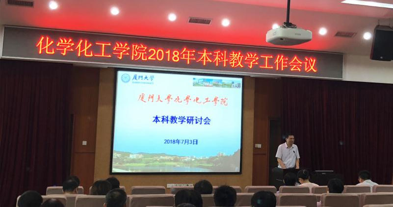 7月3日上午,学院在化学报告厅召开2018年本科教学工作会议。教务处副处长黄艳萍,学院党政领导、各系领导、教学督导、特聘教授、课程组组长、骨干教师、教学秘书和辅导员等共90余人出席会议。会议由学院党委副书记刘俊杰主持。