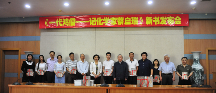 4月23日下午3时,化学化工学院与厦门大学出版社联合在颂恩楼220会议室举行《一代鸿儒——记化学家蔡启瑞》新书发布会。本书主编、中科院院士万惠霖,校党委常委、副校长詹心丽,蔡启瑞先生家属,漳州校区党工委书记林辉,校图书馆馆长钞晓鸿,厦门市图书馆副馆长付虹,学院院长谢兆雄,出版社总编辑宋文艳,校友代表,兄弟学院代表以及学院师生代表200多人参加了发布会。活动由学院党委副书记刘俊杰主持。