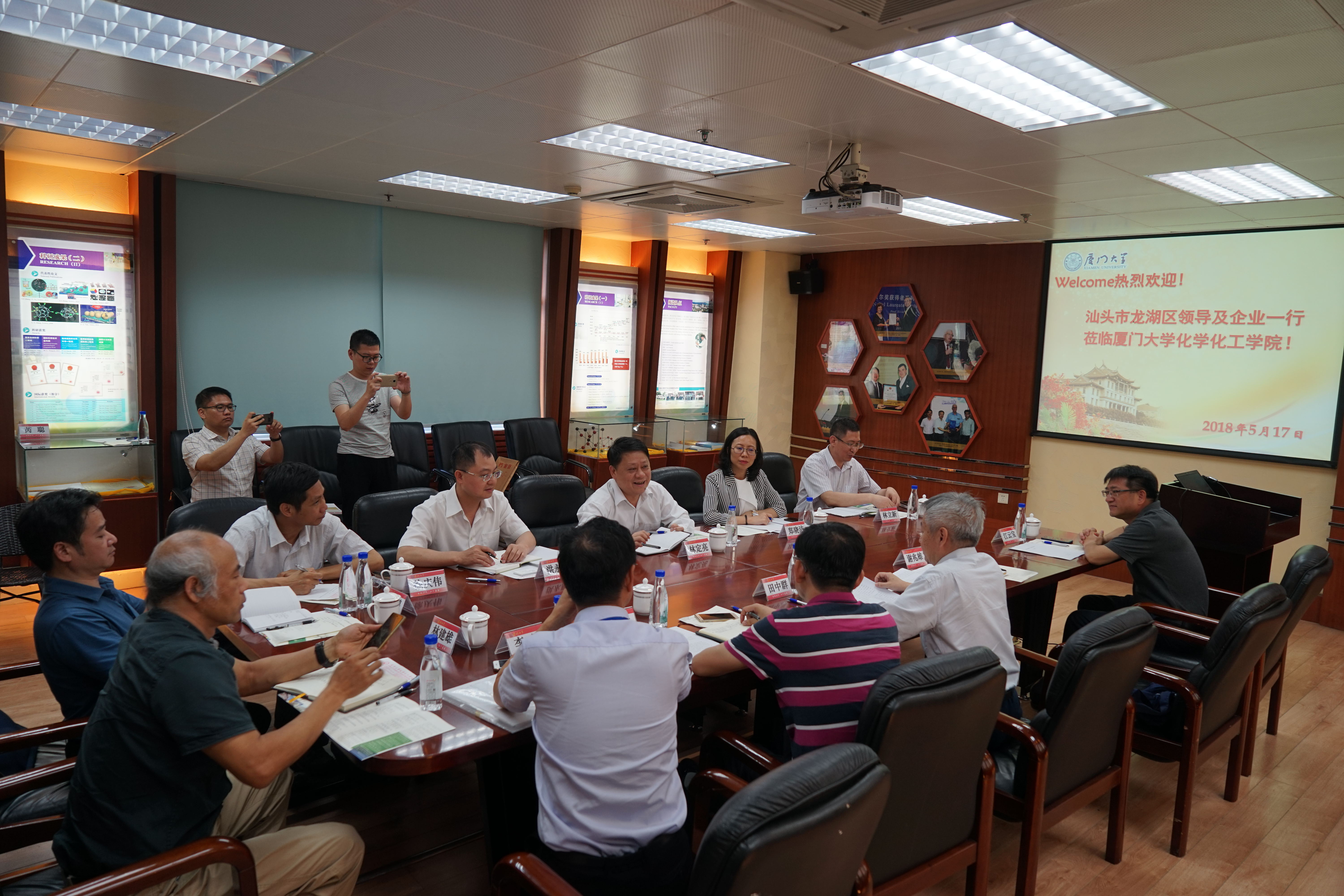2018年5月17日,汕头市龙湖区与厦门大学化学化工学院就“深化院地战略合作,推动产学研合作”研讨座谈会在厦门大学卢嘉锡楼215会议室举行。