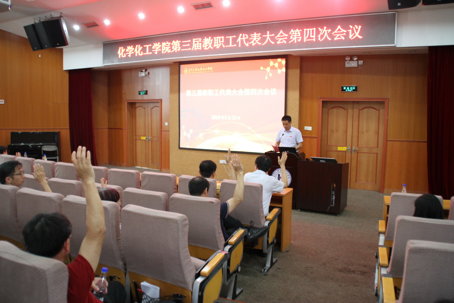 5月23日下午,化学化工学院第三届教代会第四次会议在化学报告厅举行。学院党政班子、教职工代表70余人等参加会议。会议由学院副院长张昌胜主持。