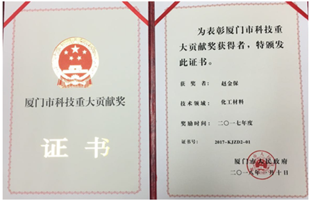 2017年度厦门市科学技术奖获奖名单公布,我院引进人才赵金保教授获得厦门市科学技术重大贡献奖。该奖项授予在科学研究、技术创新、科学技术成果转化和高新技术产业化等方面取得重大成就的个人,每两年评审一次,每次奖励不超过2人。2017年度两名专家获此殊荣。